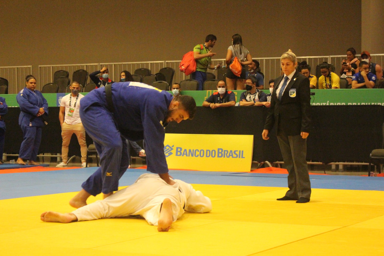 Matheus, do lado azul, competindo durante os JUBs 2021. (Foto: Arthur Raposo Gomes)